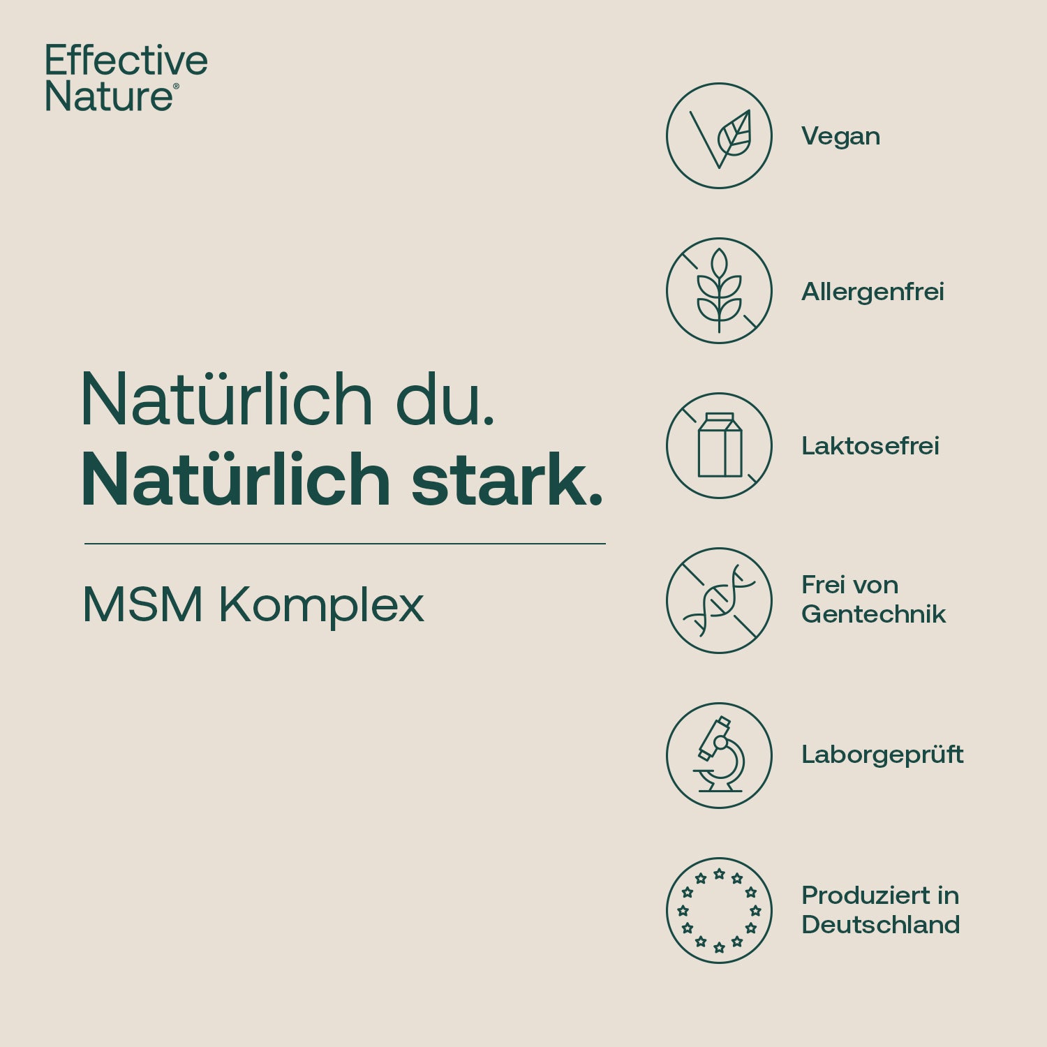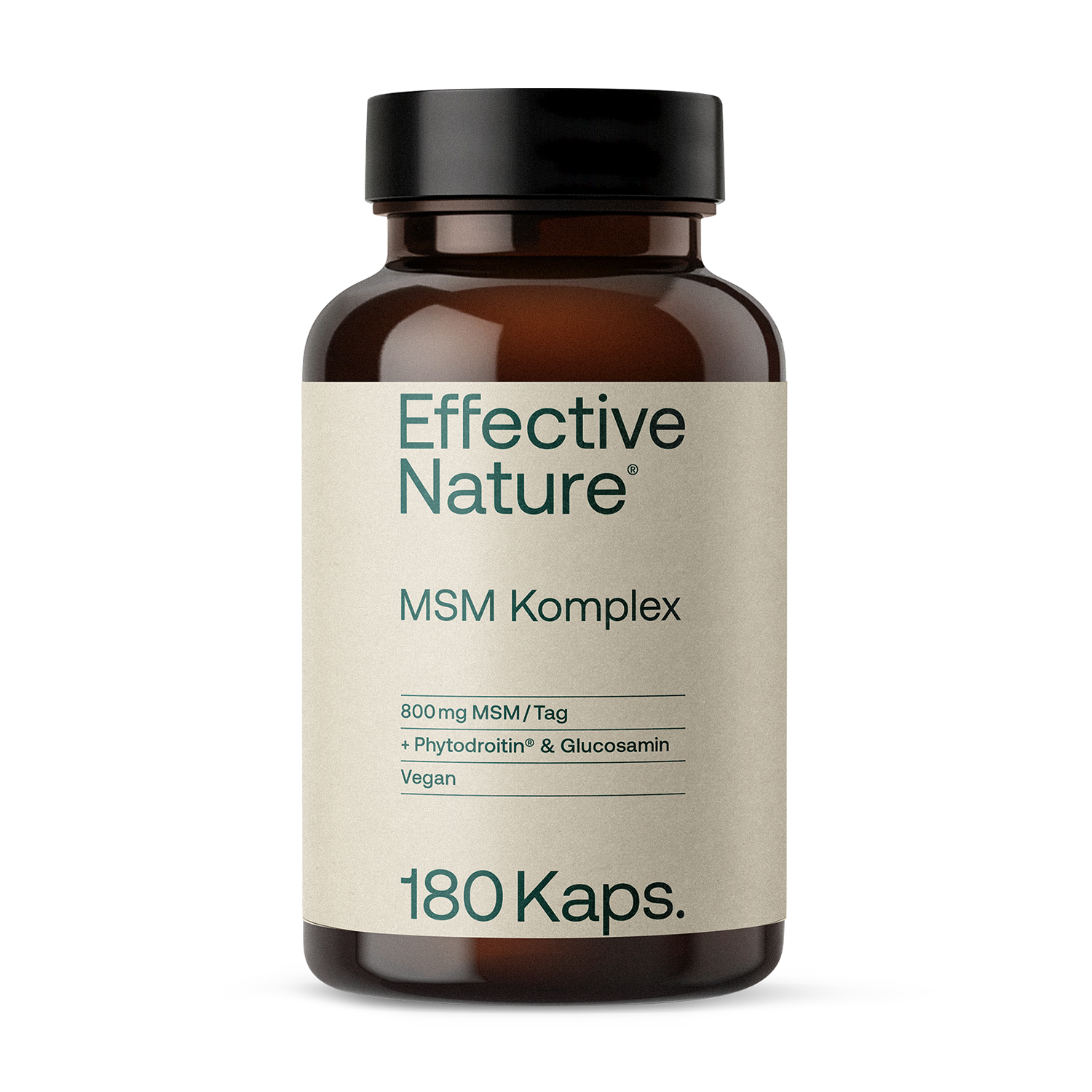 Der MSM Komplex basiert auf Methylsulfonylmethan, einer organischen Schwefelverbindung, die als natürlicher Bestandteil in zahlreichen Strukturen des menschlichen Körpers vorkommt. Schwefel findet sich unter anderem in wichtigen Gewebearten wie dem Bindegewebe und den Knorpeln wieder. Hier wird das MSM in einer hochdosierten Menge von 800 mg pro Tag bereitgestellt.Innovative Pflanzenkraft durch Phytodroitin™ und Glucosamin