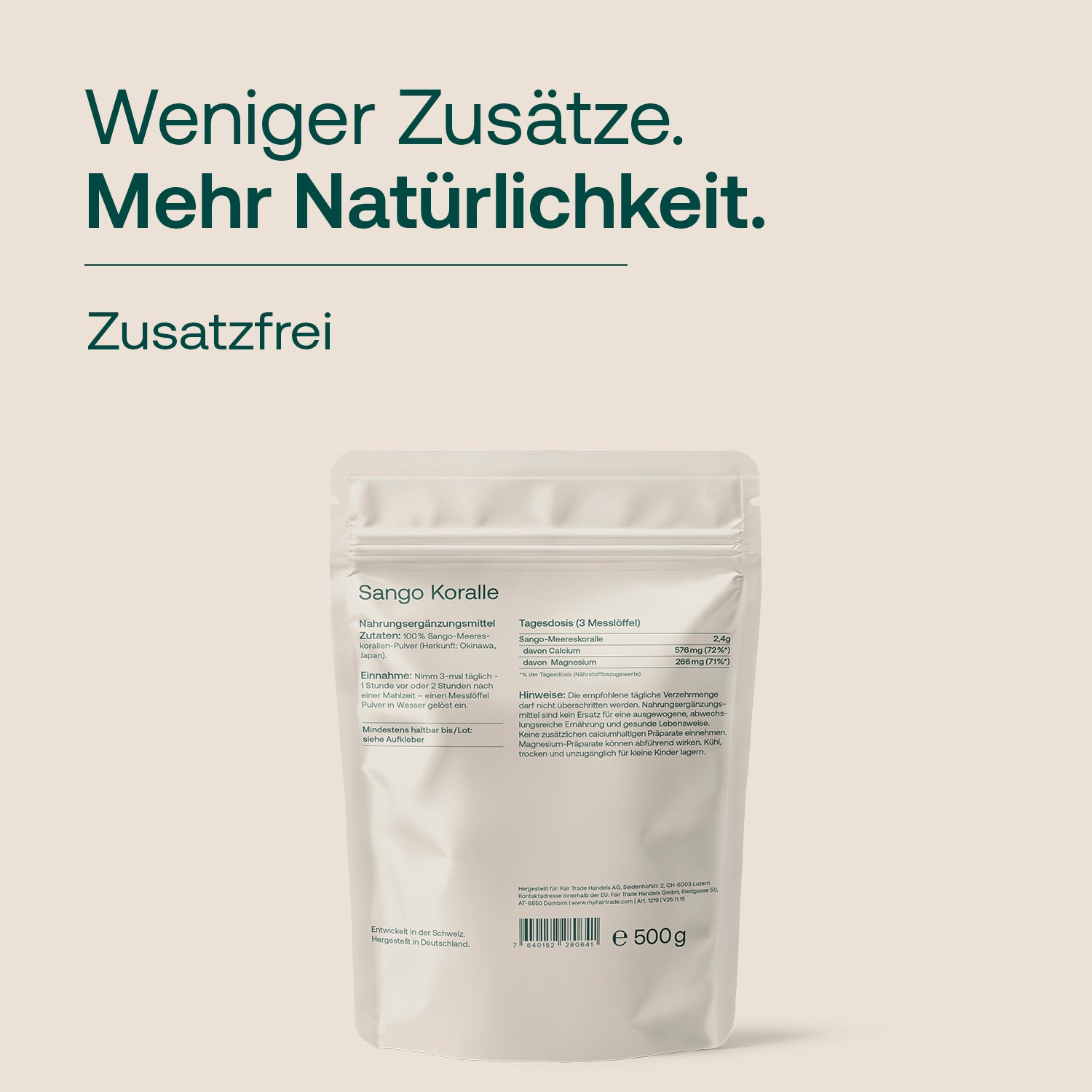 Sango-Korallen gehören zu den riffbildenden Organismen subtropischer Meere, insbesondere rund um Okinawa in Japan. Ihr kalkhaltiges Skelett besteht überwiegend aus mineralischen Verbindungen, die sich über lange Zeiträume im Meerwasser bilden. Charakteristisch ist die poröse Struktur, in der neben Calciumverbindungen auch Magnesium und zahlreiche Spurenelemente eingebunden sind. Anders als viele isolierte Mineralstoffe entsteht dieses Gefüge nicht im Labor, sondern als Ergebnis biologischer und geochemischer Prozesse im Ozean – auf ganz natürliche Weise.Ein Duo für Knochen und Energiestoffwechsel